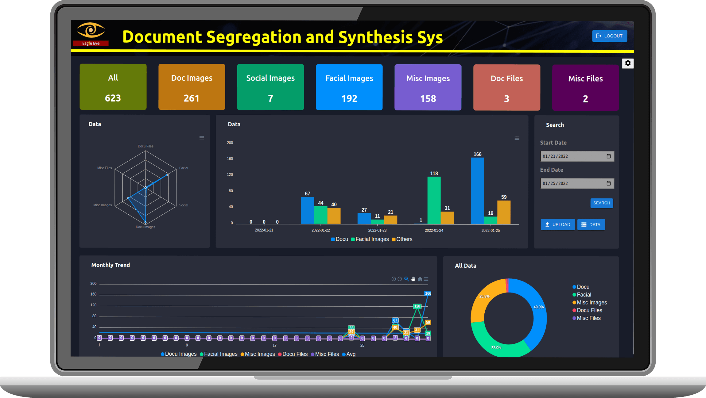EagleEye offers fast and accurate way to split your data. It can seperate Document Screenshots, Chat, Forms and different other data accurately using Deep Learning. It also offers Optical Character Recognition features to read text and get insights from those document images.